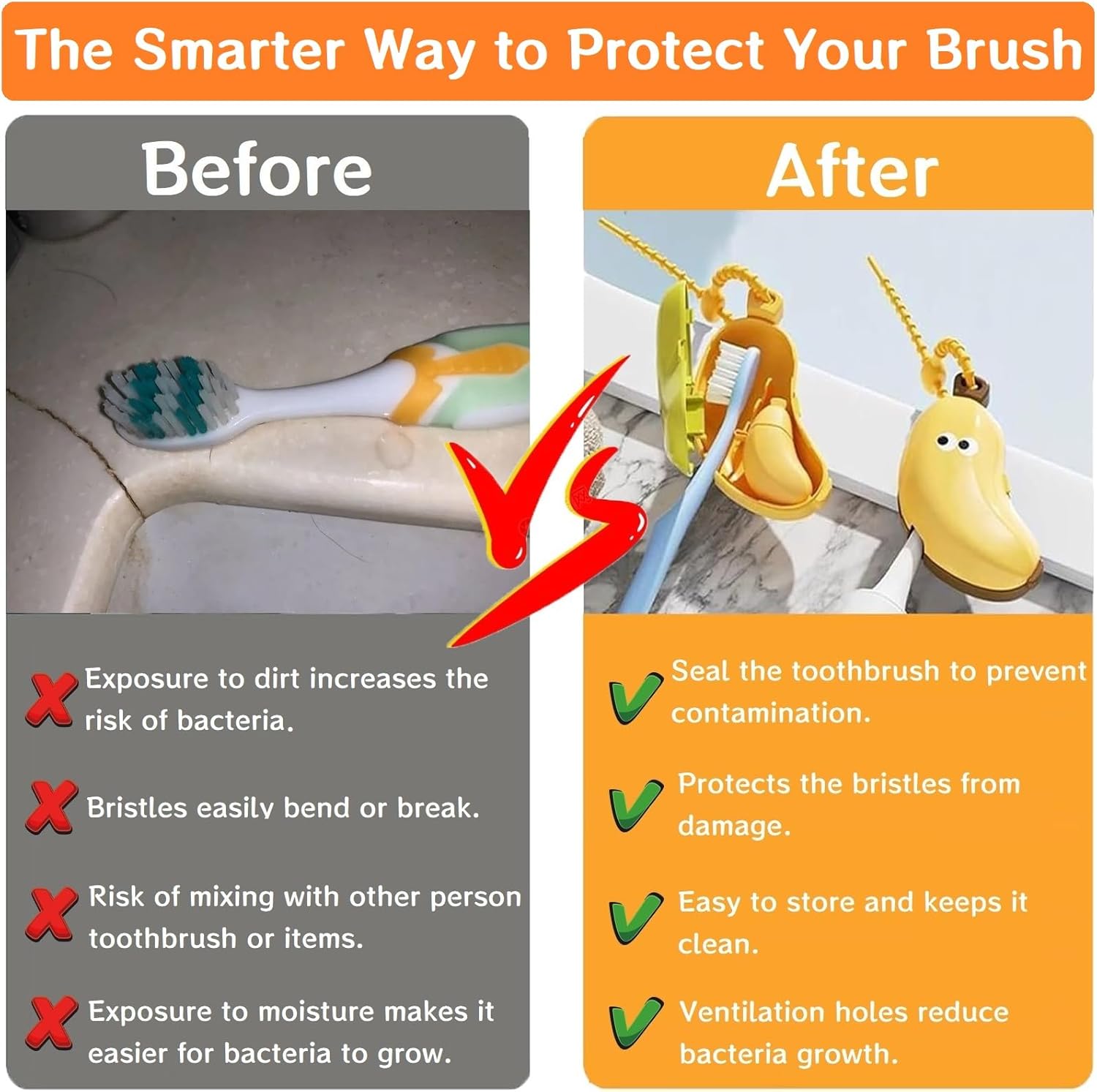 - 【2-in-1 Banana toothbrush case】:Tired of messy travel kits? This 2-in-1 Banana toothbrush holder is the solution! It neatly stores your toothbrush AND toothpaste, with a handy lanyard for carrying. The best part? A side-button pops it open easily—no struggling with your nails. It’s travel-friendly and totally nail-lover approved!