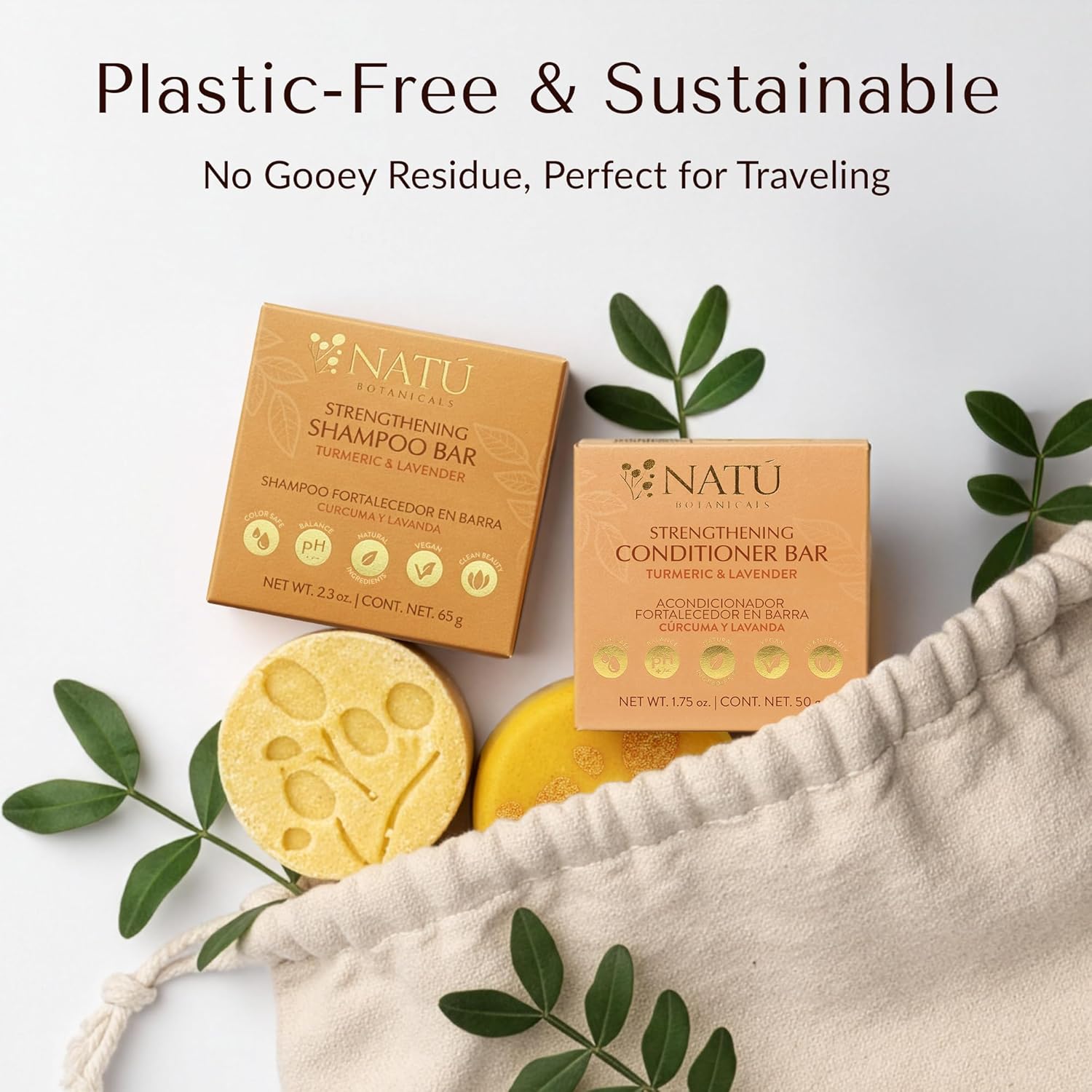 NATÚ BOTANICALS Strengthening Hair Conditioner Bar – Turmeric & Lavender – Moisturizing Conditioner for Dry Hair, Damaged & Frizzy Hair - Deep Conditioning, Scalp Soothing & Hair Strengthening 2.3oz