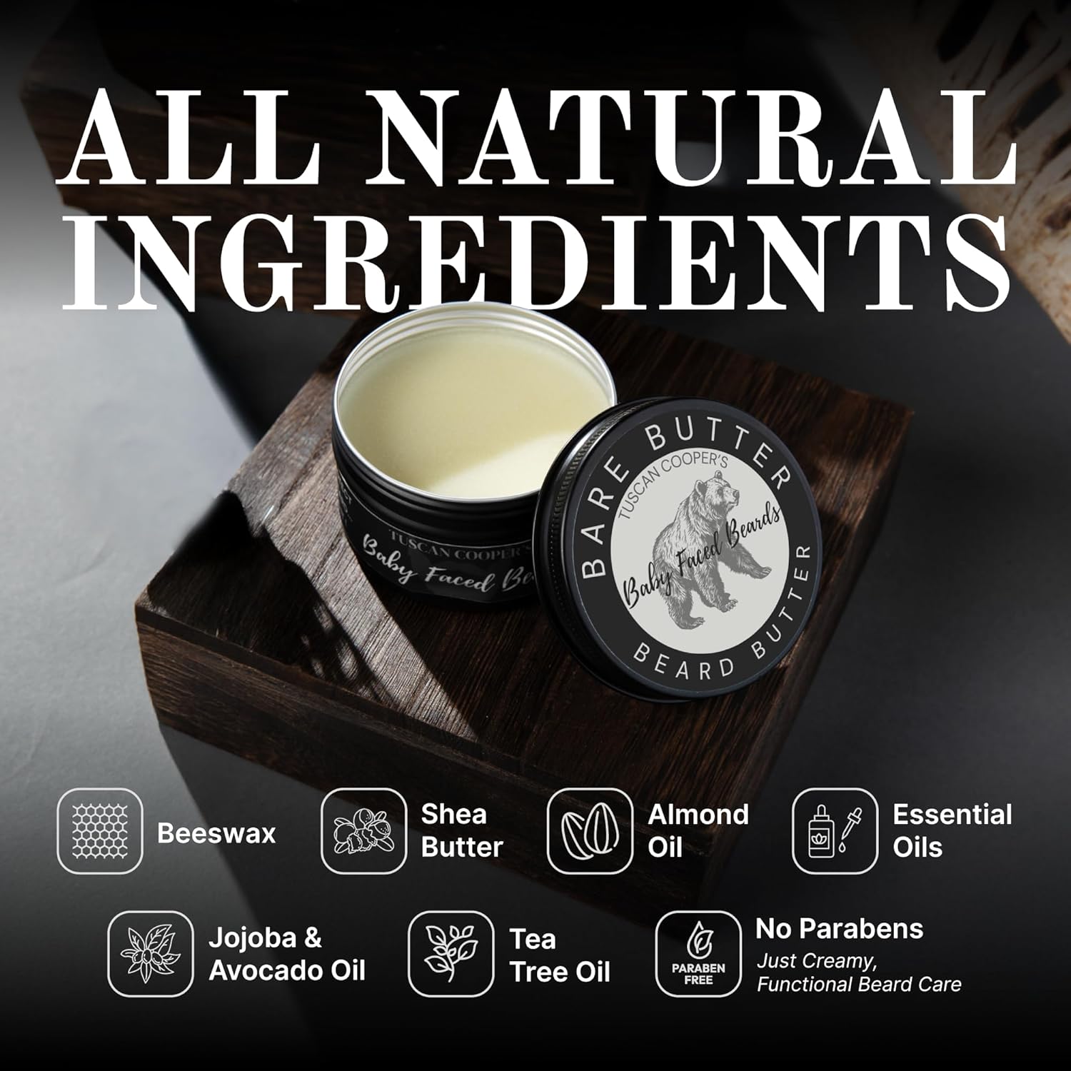 - Tuscan Cooper’s Baby Faced Beard Butter for Men - Moisturizing Beard Balm Cream and Softener for All Hair Types Including Coarse Hair - 4oz Hydration and Conditioning Care - Bare Unscented