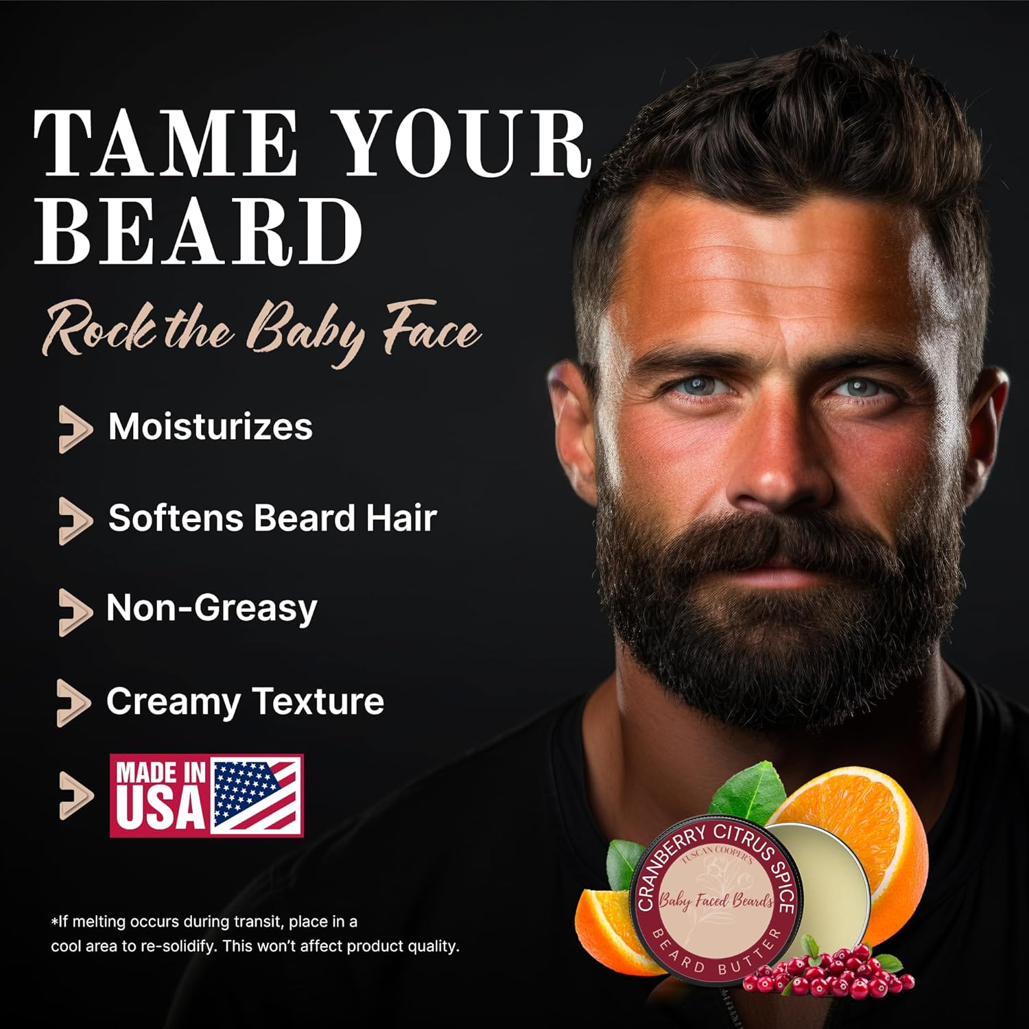 - Tuscan Cooper’s Baby Faced Beard Butter for Men - Moisturizing Beard Balm Cream and Softener for All Hair Types Including Coarse Hair - 4oz Hydration and Conditioning Care - Cranberry Citrus Spice