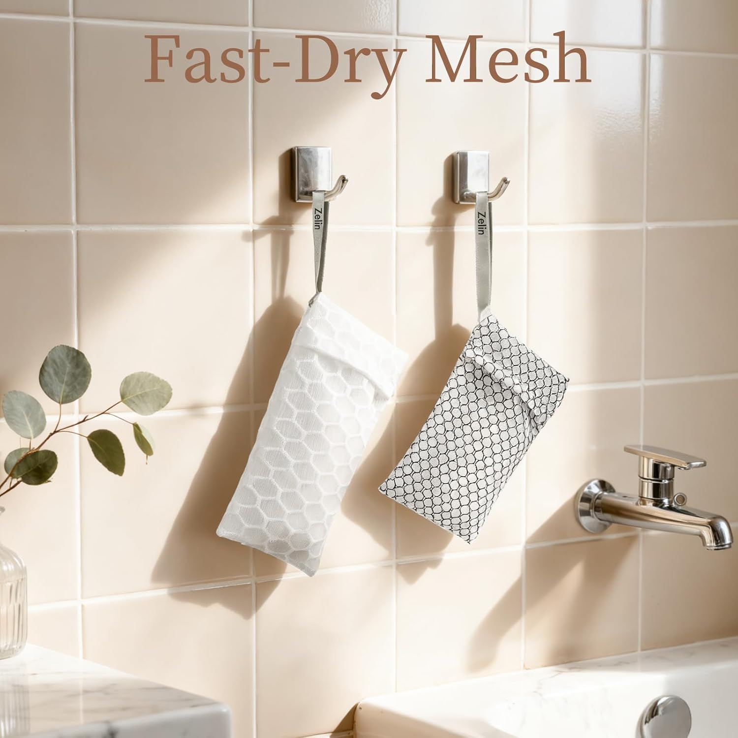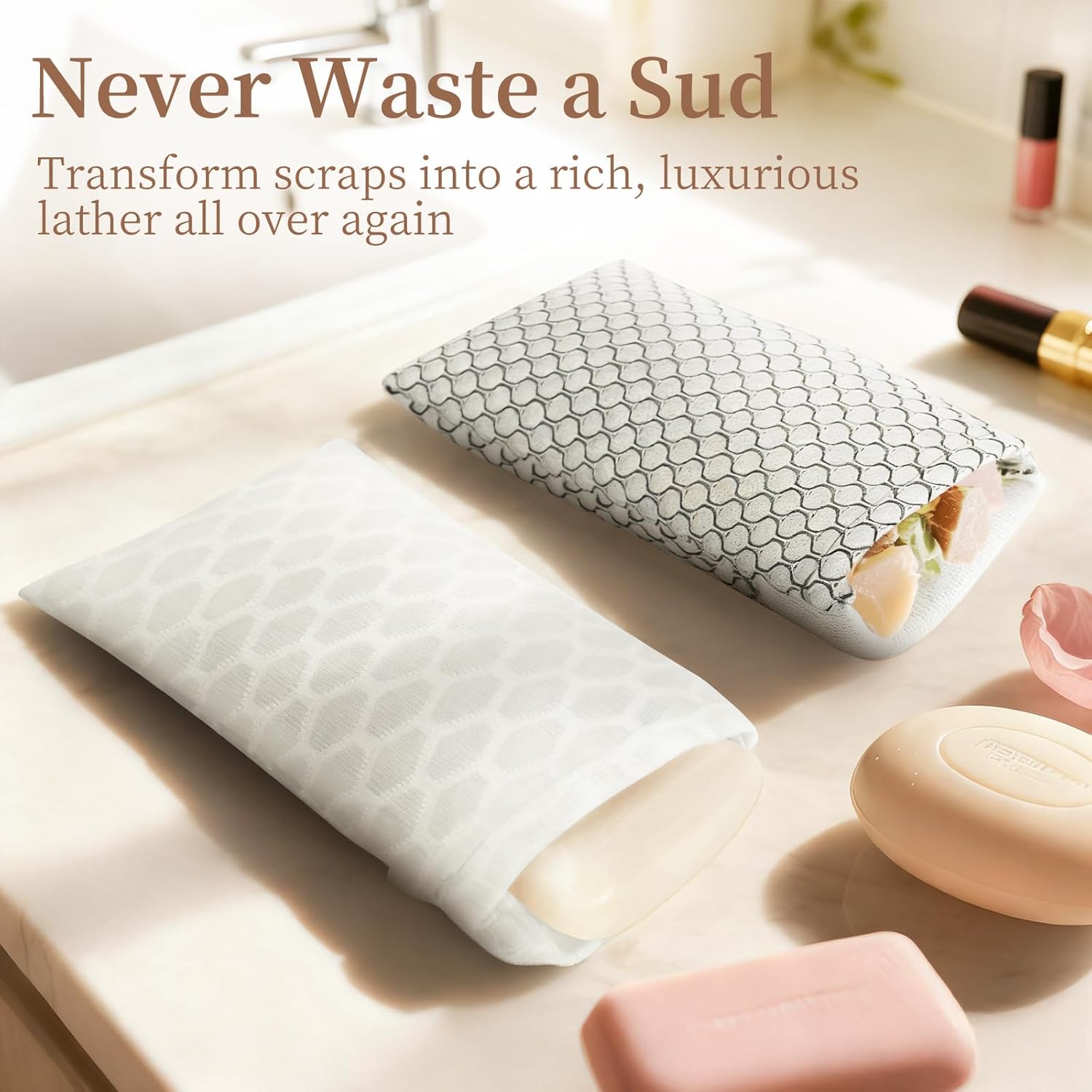 - Dual-Layer Exfoliating & Lathering Design: Our mesh soap bag features a high-quality two-layer system. The fine inner mesh soap bag rapidly generates a rich, luxurious lather, while the textured outer honeycomb layer gently exfoliates, turning your bar soap into a spa-like exfoliating experience