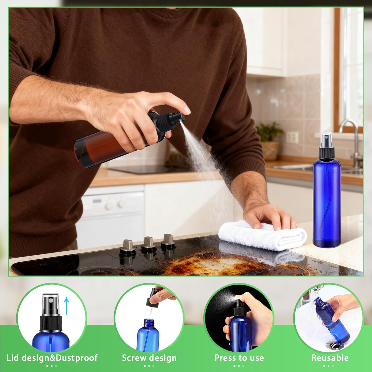 - Practical Home Improvement Tool: the plastic spray bottle can be widely applied in daily life, you can use it as a cosmetic subpackage, essential oils bottle in many occasions, like, haircut shop, bathroom air freshener, household room cleaner, short business trip and more