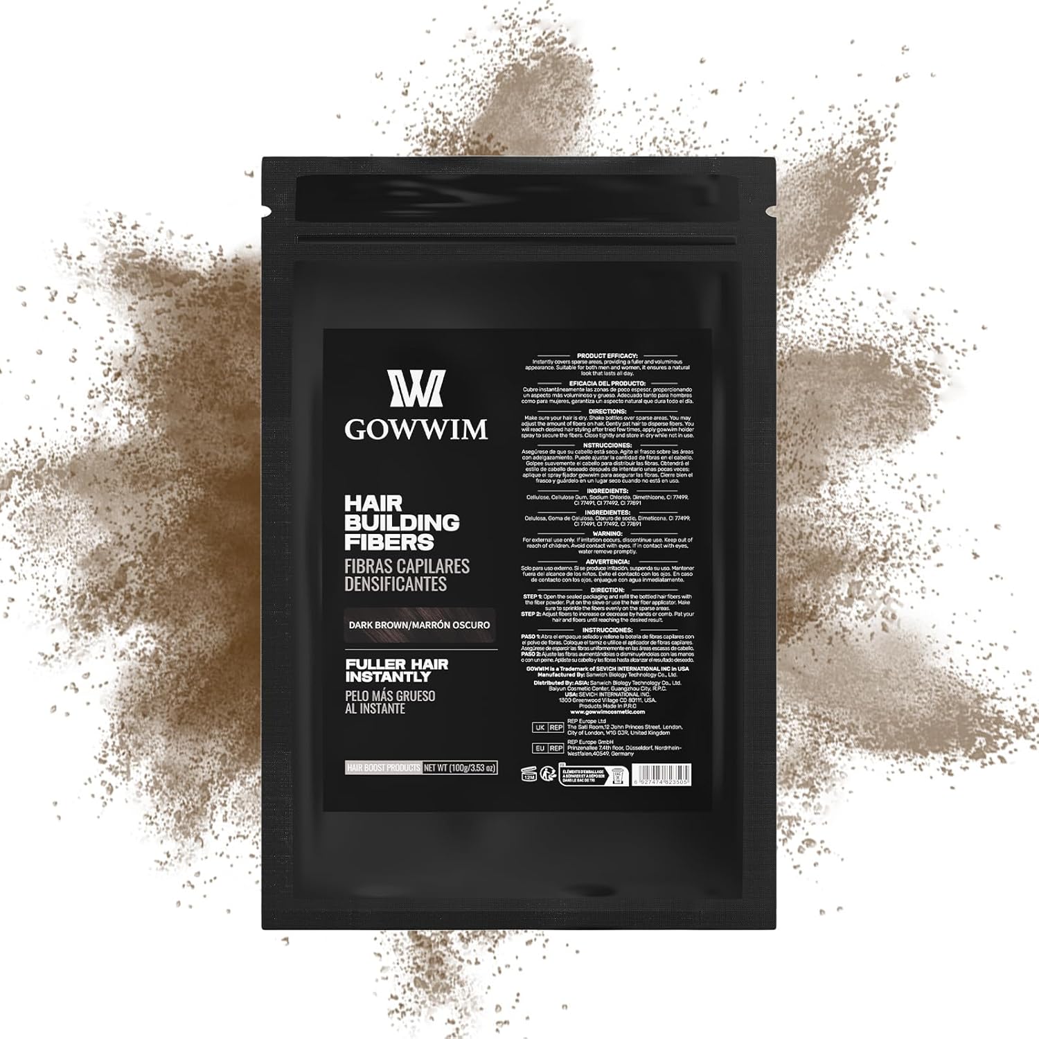 Gowwim Hair Fibers,Instant Building Thickening Fibers for Thinning Loss Hair Natural Grey Coverage Touch up Bald Spot Cover up Waterproof & Sweatproof for Women & Men 100g