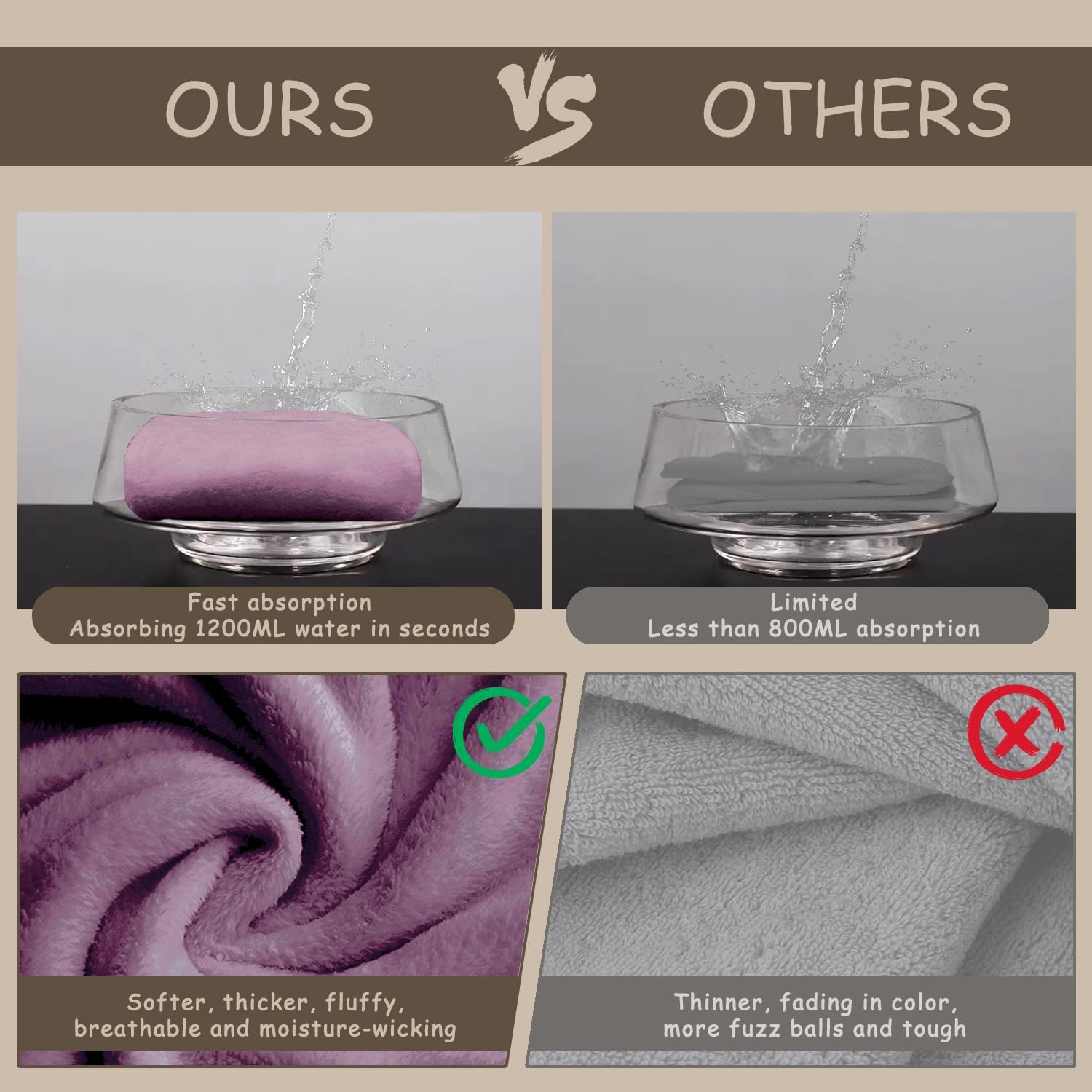 - 【Ultra-Absorbent Microfiber Material】 Our hair drying towels are made of high-quality, ultra-soft microfiber that absorbs water up to 7x faster than cotton. Gently wicks away moisture from your hair, significantly reducing drying time and minimizing heat damage from blow dryers. It's the gentle yet efficient solution your hair deserves.