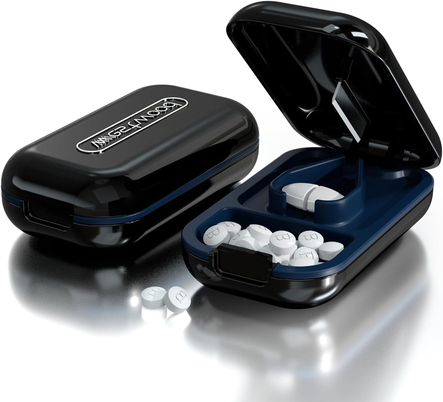 - 【Multifunctional Medicine Box】The pill cutter splitter has 1 Built in pill storage compartment can hold 4-10 pills, Quality design, Built to withstand repeated use