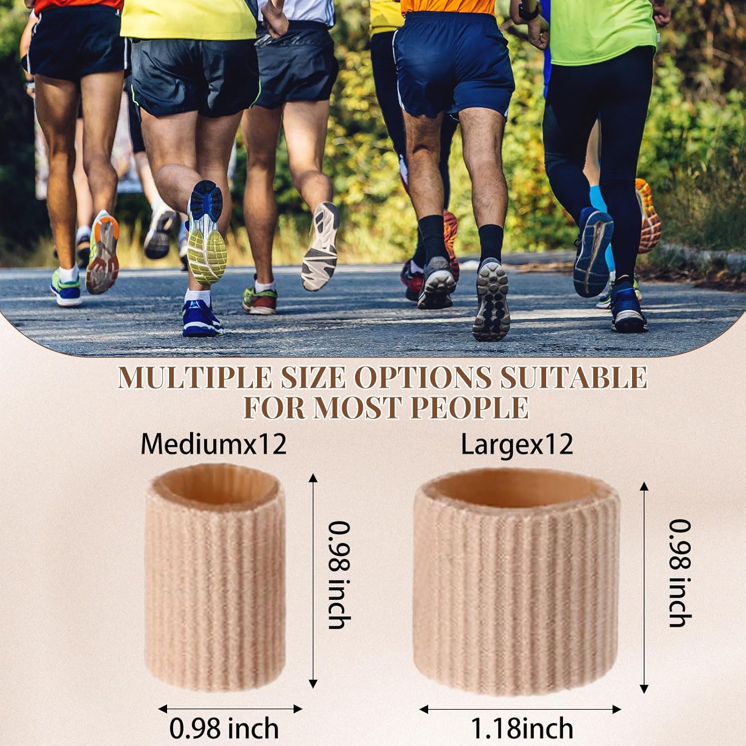 Blulu 24 Pieces Toe Tubes 0.98 Inches Cushion Tube Corn Pads for Toes Sleeves Soft Gel Protectors for Cushions Corns Blisters Calluses 3 Size(Skin Color,Medium,Large)
