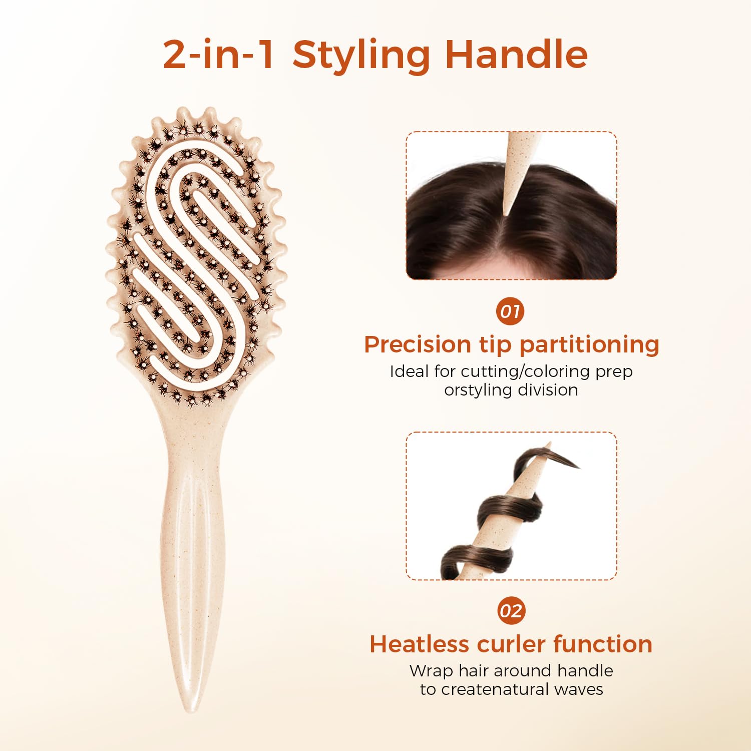 - Curl Styling Brush: Combines soft boar bristles, nylon pins and wide-teeth design to effortlessly detangle and shape curls without painful pulling for smoother, defined curls and a comfortable styling experience