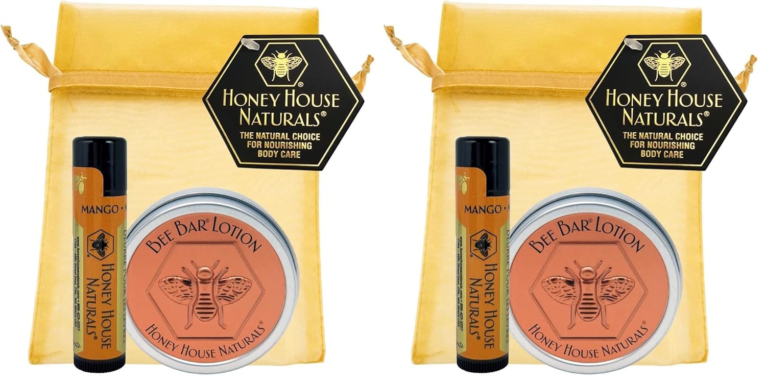 Honey House Naturals 2 Piece Gift Set, All Natural, Ultra Moisturizing Lotion Bar and Lip Butter Infused with Essential Oils, Made in USA, (Variant Name) (Pack of 2)