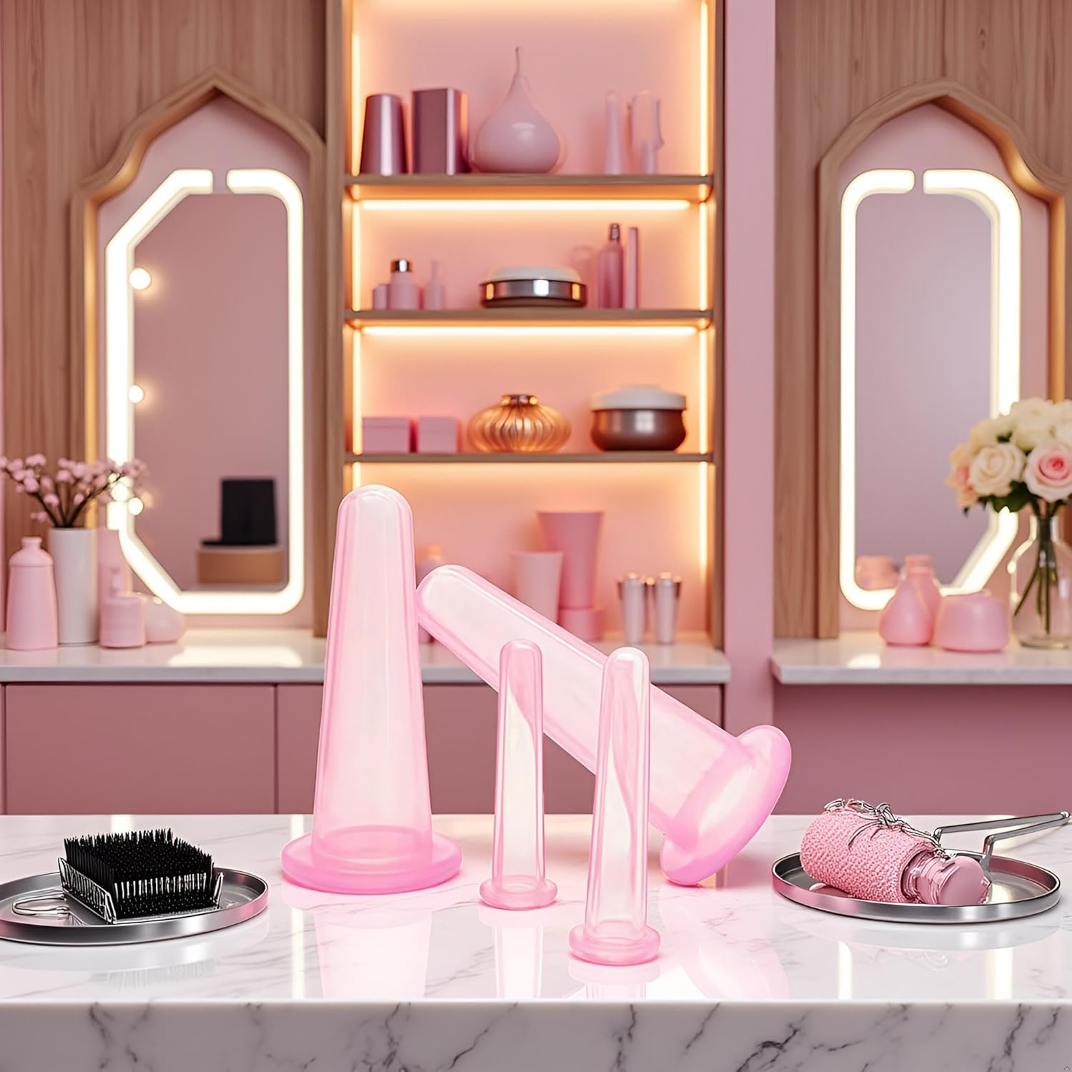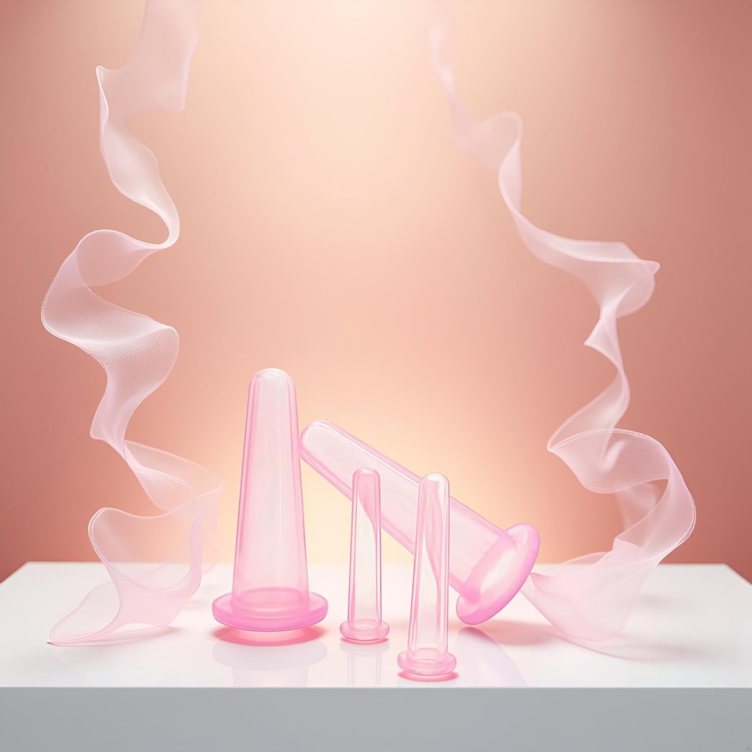 4Pcs Massage Cupping Set Silicone Mini Facial Cups Face Massager Helper Skin Care Neck Back Eyes Massaging Cup Safe to Use, Don't Worry About Burns Health Care Products (Pink)