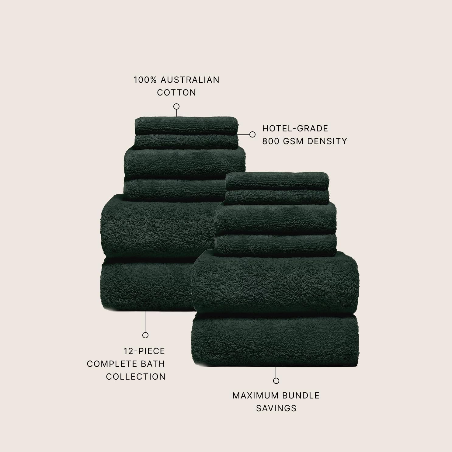 Italic Ultraplush 12-Piece Family Towel Set – Luxury Bath Towels, Hand Towels & Washcloths – Plush, Quick Dry, 800GSM 100% Australian Cotton for Bathroom & Spa - White & Blue (Deep Forest)