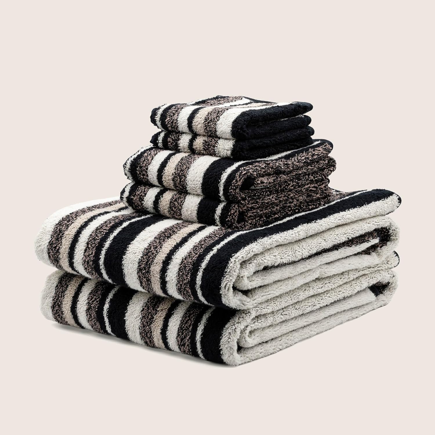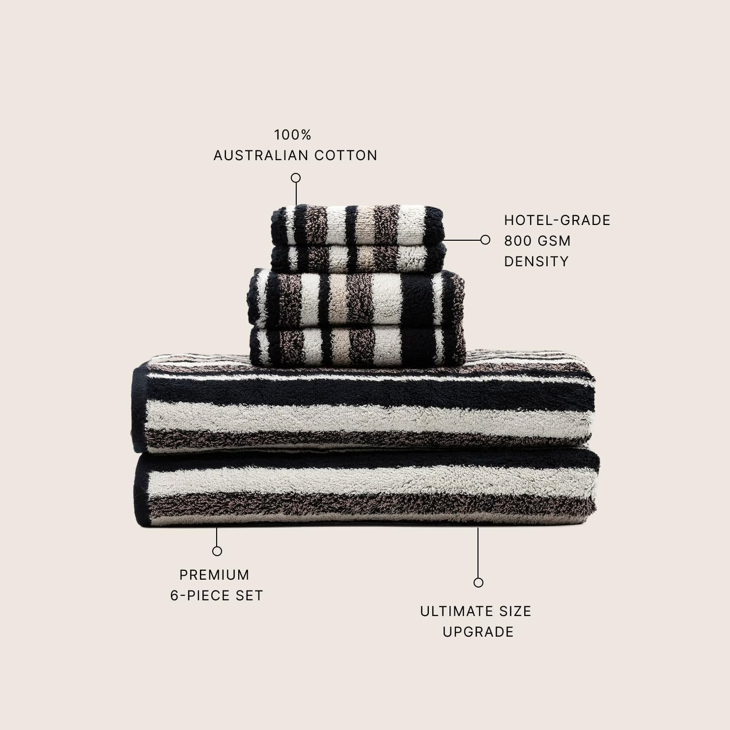Italic Ultraplush Luxe 6 Piece Towel Set – 2 Bath Sheets, 2 Hand Towels, 2 Washcloths – 800GSM Soft, Highly Absorbent & Quick Drying, Resort Grade 100% Australian Cotton Towels (Stripe Multi-Color)