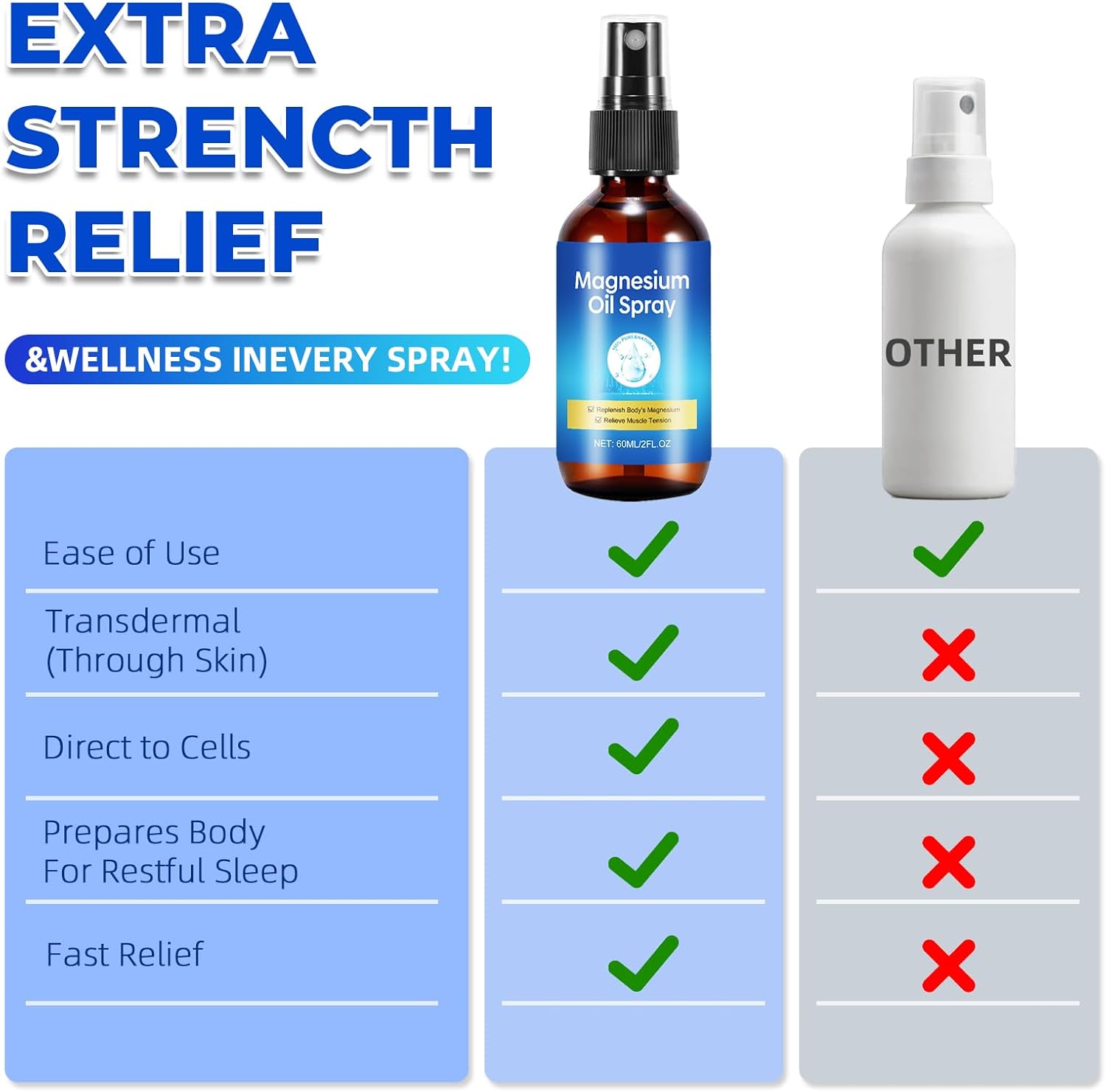 - [Magnesium oil refreshing penetration technology] The spray has a delicate texture and the oil easily penetrates the skin. Pat and massage for 20 seconds for rapid absorption. Natural ingredients are skin-friendly and will not irritate the skin.