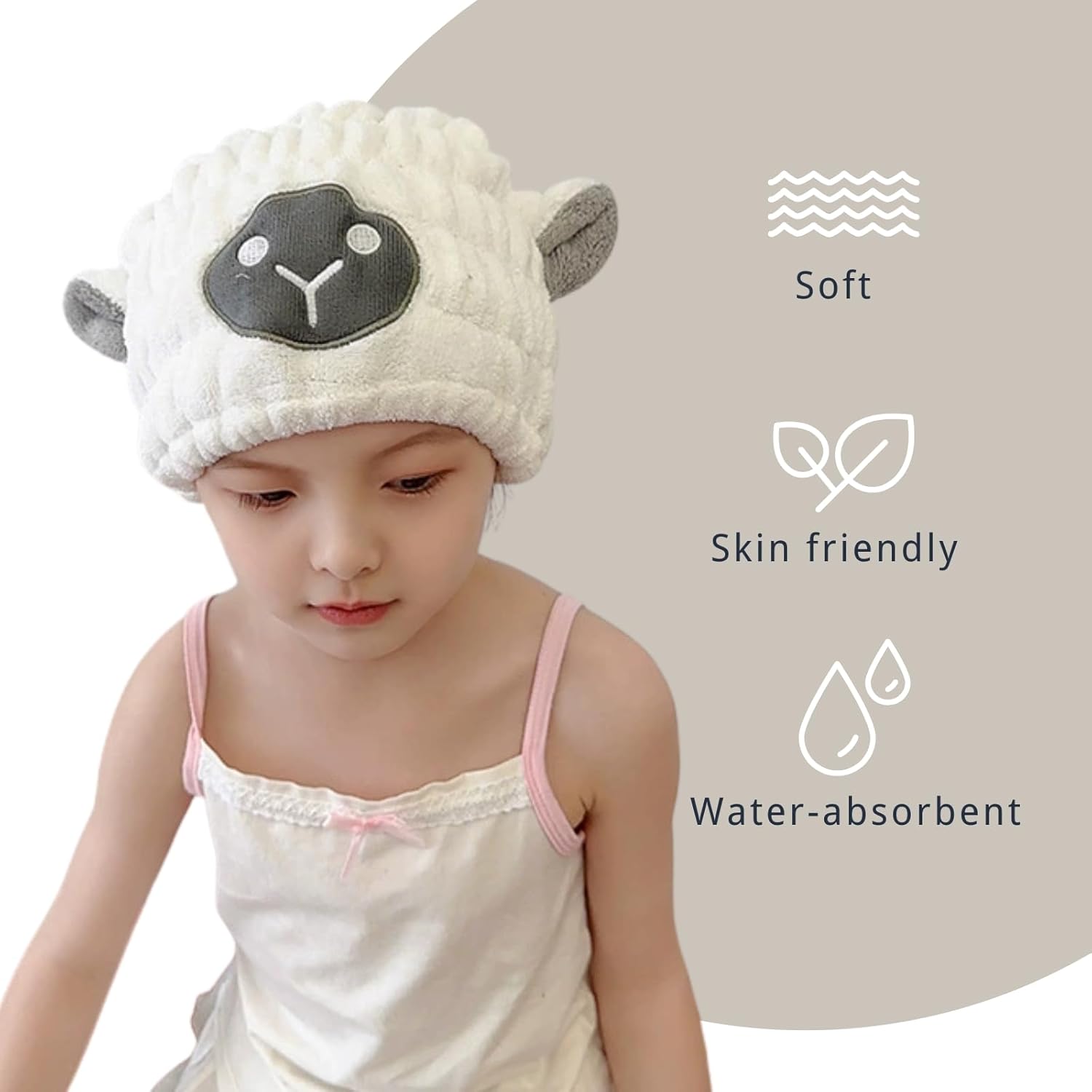 - EASY TO USE - Cute sheep shape microfiber bonnet with a new upgraded design, no need to twist and tighten the hair like the traditional dry towel, avoiding the pull on the baby's delicate hair. The dry hair wrap stays securely in place, leaving your child's hands free to do other things.